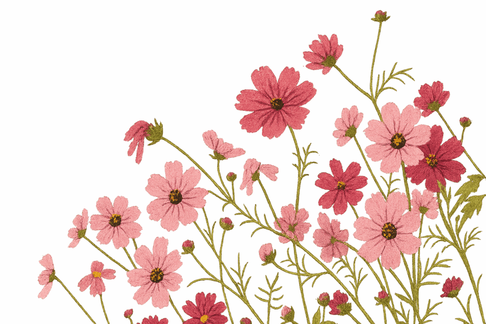 Ci sono fiori che passano inosservati fino a quando non li guardi bene e che non hanno il clamore dei girasoli né il portamento fiero delle dalie. Le cosmee sono sottili fragili all’apparenza, ma se ti fermi ad osservarle capisci che non hanno bisogno di essere al centro: sanno stare ai margini eppure danzano.